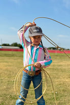 This charming kids' button-up shirt features a playful combination of pink, blue, and tan stripes, accented with classic pearl snap buttons for easy wear. Perfect for adding a pop of color and style to any child's wardrobe, it blends comfort with a timeless look that’s ideal for both casual days and special occasions. Designed to keep kids looking sharp while feeling comfortable all day long.
